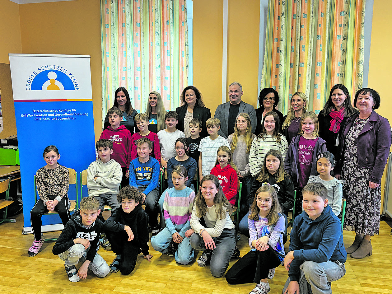 Der „Augen auf die Straße“-Workshop von „Große schützen Kleine“ machte an der Volksschule Groß St. Florian Station. Sehen, hören und Körperbeherrschung waren Programm.