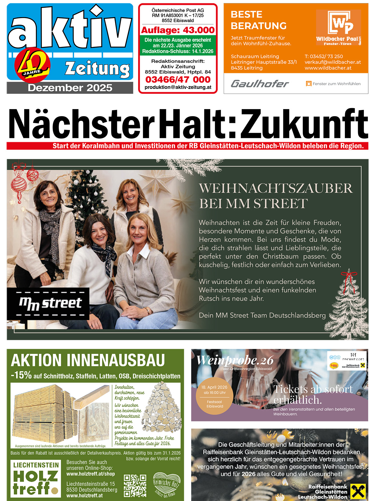 Aufgrund außergewöhnlicher Leistungen bei der Lehrlingsausbildung bekam die Hochkofler GmbH – mit Standorten in Wies und Leibnitz – den Bundesadler verliehen. Am 8. und 9. November lädt Hochkofler zur traditionellen Hausmesse nach Wies ein.