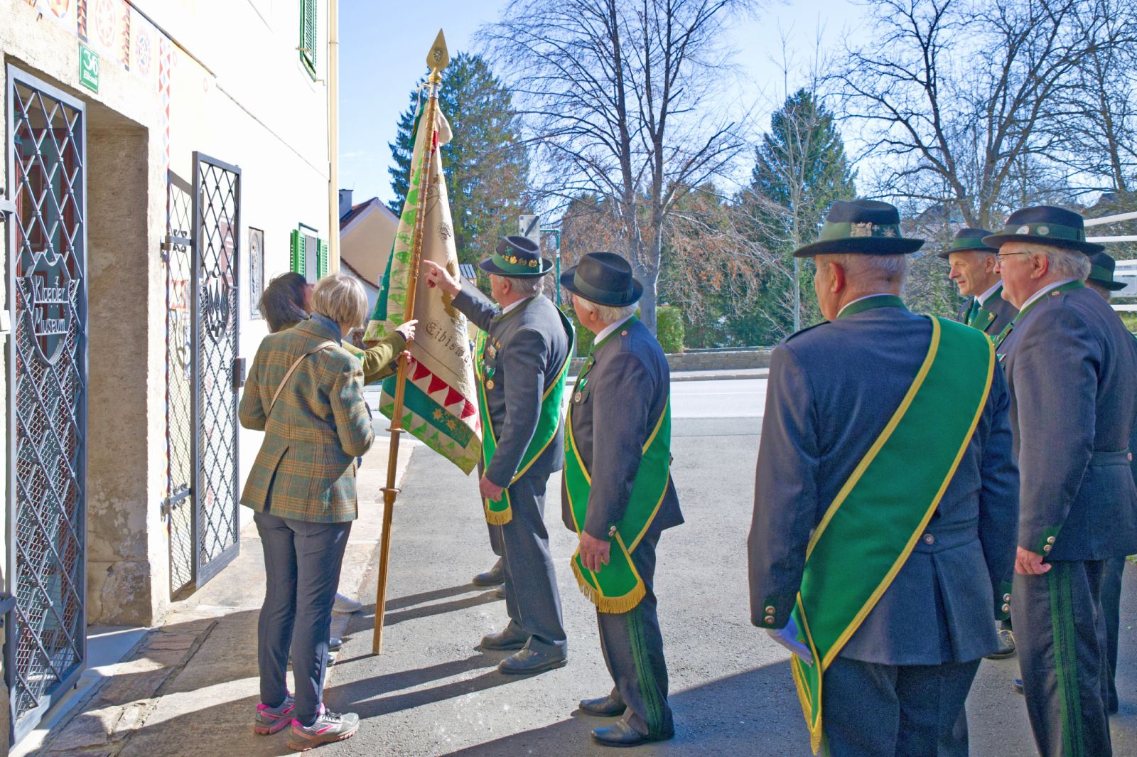 Der örtliche ÖKB übergab eine uralte Fahne mit durchaus historischem Wert an das Eibiswalder Kloepfermuseum. (Fotos: Adi Allesch)