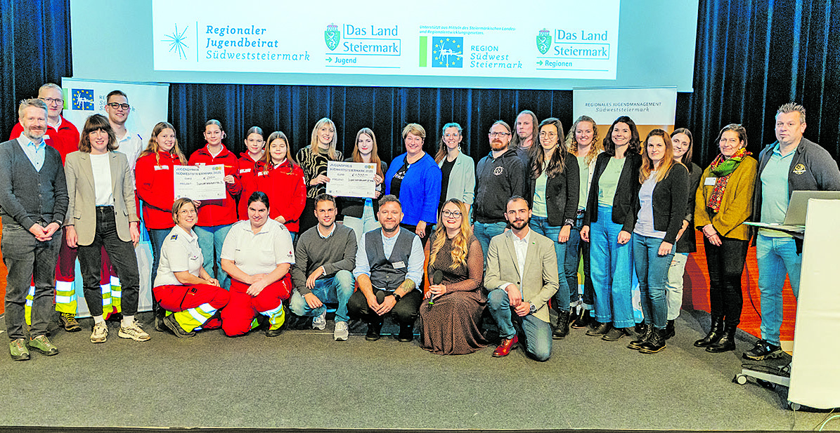 Mit durchschnittlich acht Jahren bekommen Kinder ihr erstes Smartphone. Zwischen TikTok, Snapchat, YouTube und Co. bleiben echte soziale Kontakte häufig auf der Strecke. Hier setzte der Steirische Jugendtag in der Steinhalle Lannach an. Vergeben wurde dabei auch der Jugendpreis der Südweststeiermark. (Foto: der Schindler RMSW)
