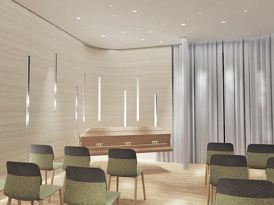 Neben einem ansprechenden Büro- und Besprechungsraum ist der neue Verabschiedungsraum Herzstück der Geschäftsfläche. „Damit schaffen wir als Komplettanbieter in punkto Bestattung einen Lückenschluss für die gesamte Region. Als Alternative und Erweiterung zum bestehenden Angebot von Aufbahrungshallen bzw. wenn Menschen aus der Kirche ausgetreten sind und eine Verabschiedung im kleinen Rahmen wünschen, bietet sich dieser Raum an“, so Gernot Reiterer. Mit moderner Ton- und Bildtechnik ausgestattet, finden bis zu 25 Personen bequem Platz und auch die Agape kann durch das Vorhandensein einer Teeküche vor Ort abgehalten werden.