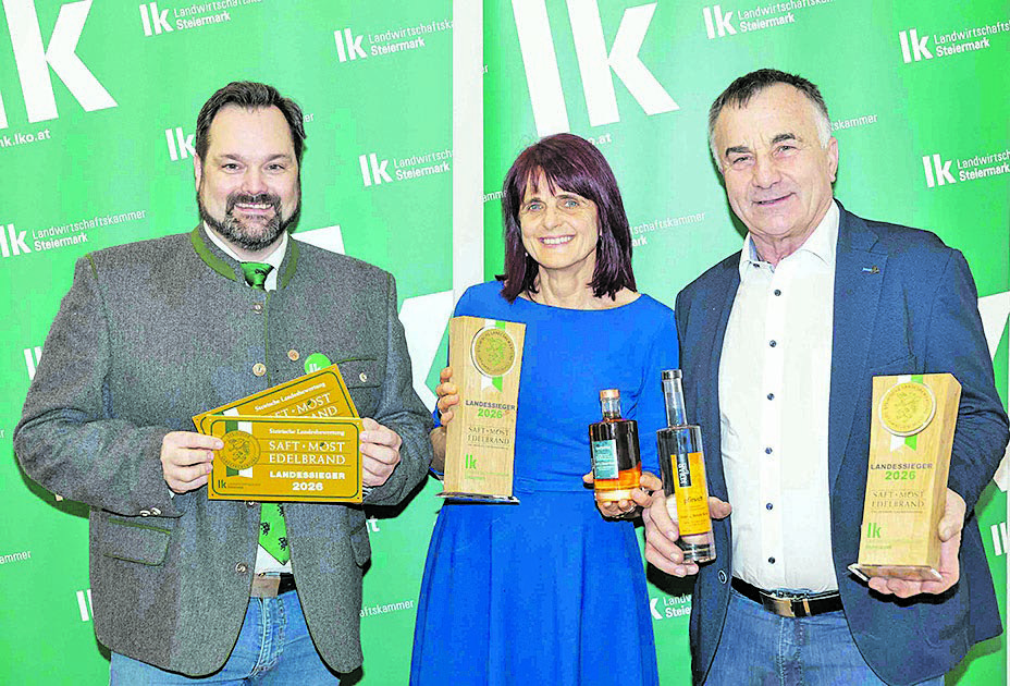 Sie überstrahlen die Edelbrand-Landesprämierung 2026 der Landwirtschaftskammer: Ein Dreifachlandessieger und zwei Doppellandessieger! Doch das ist nur die Spitze des Eisbergs, denn die Fachjury kürte weitere 17 Single-Landessieger und vergoldete viele weitere Einreichungen.