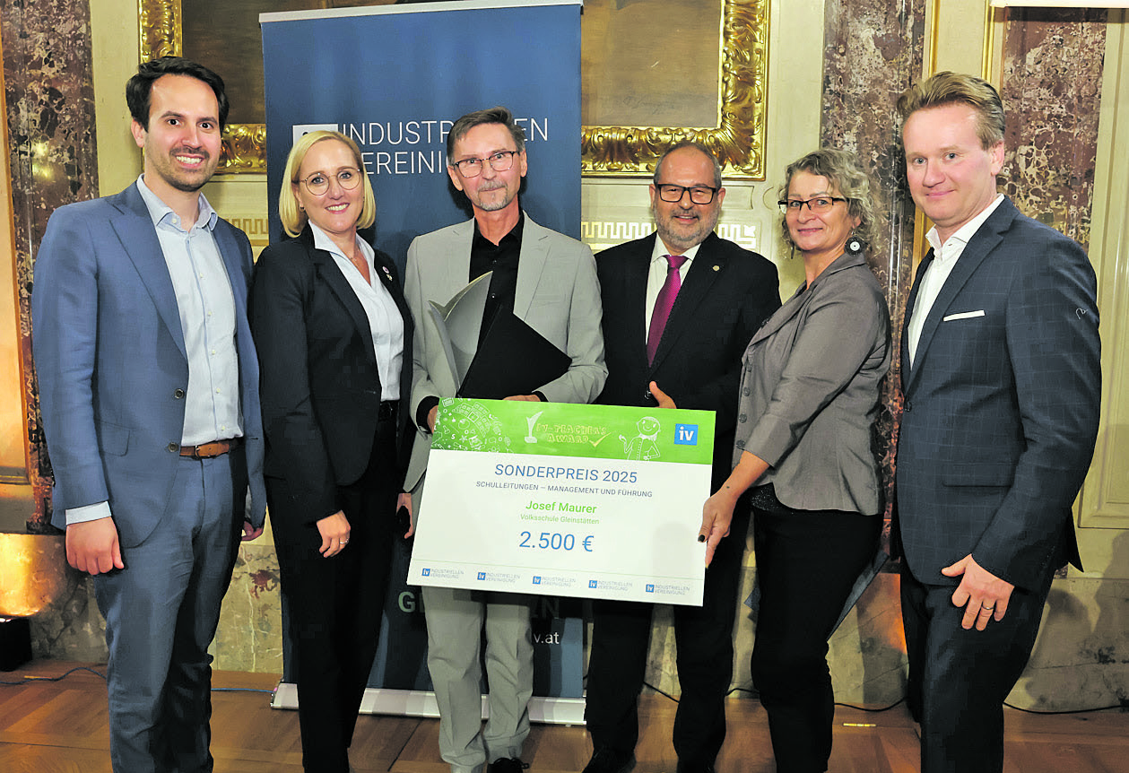 Für den Aufbau des Bildungscampus Gleinstätten wurde VS-Dir. OSR Josef Maurer von der Industriellenvereinigung mit dem „IV-Teacher’s“-Award geehrt. (Foto: Katharina Schiffl)